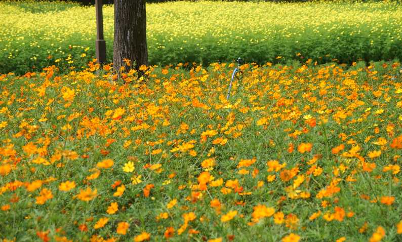 キバナコスモスと 普通のコスモス 咲き乱れていました