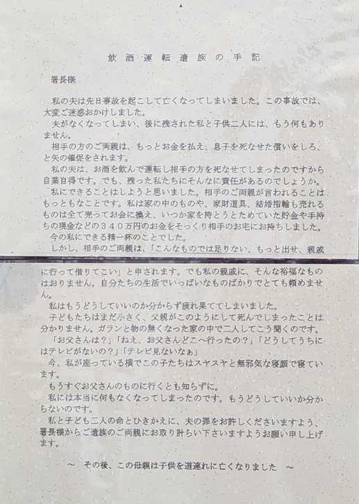 つまり自殺されたのです 加害者として夫が 飲酒運転で事故死