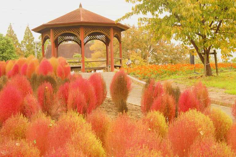 カメラの色 紅葉に近づけて東屋を 入れてみました