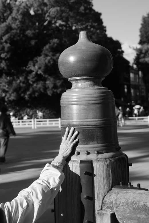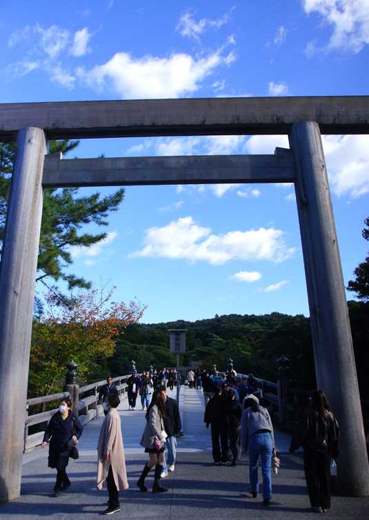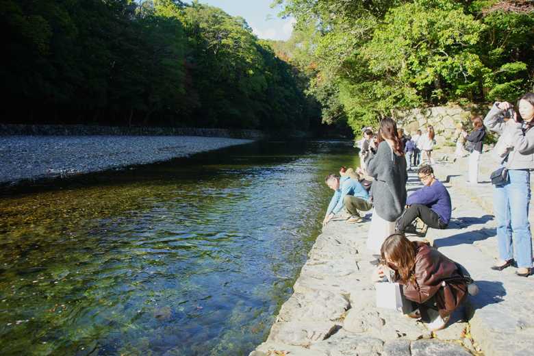 宇治橋左側の 宝珠 参拝記念を兼ねて 手で触られる方