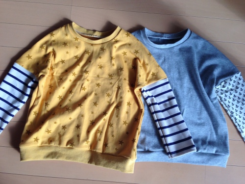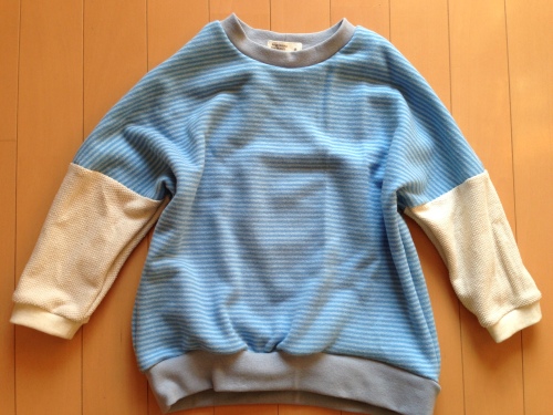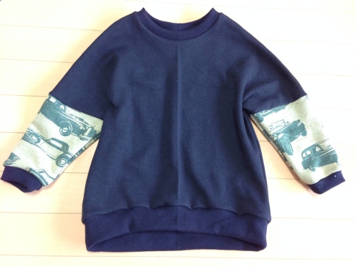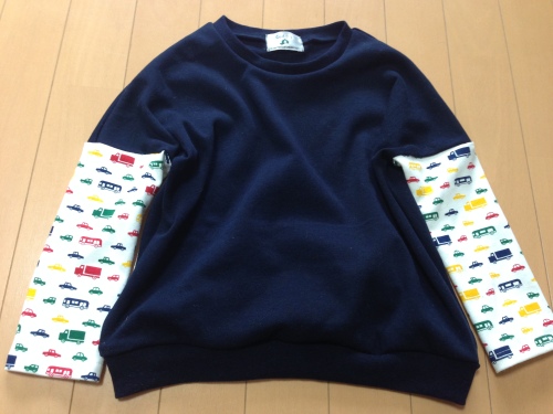 先日の販売時に購入したtoco.さんのプルオーバー110。早速1着作ってみました。着用した感じが知りたかったので、手持ちの生地でとりあえず。身生地はcosmoさんの裏毛・切り替えた袖部分はsmilleさんの車柄の裏毛生地です。まだ着せてみてはいないのですが、平置きした感じもかわいい。もうすぐ、幼稚園から帰ってくるので、早速着せてみます(笑)↓ぽちってくださると、はげみになります。にほんブログ村