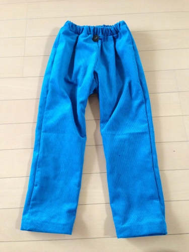toco.さんのプチサルエルパンツ110をコーデュロイで作りました。↓身長108・体重14.8が110サイズを着てます。上がパジャマです(苦笑)すみません。パンツのお色は着画の方が実物に近いです。生地は、cosmoさんで購入したコーデュロイです。お色はターコイズ。細畝なので縫いやすかったです。ほんとにシンプルなのですが、前にはいつものナカムラさんで購入したボタン。ウエストゴムもナカムラさん。とにかく安いです。↓ぽちっていただきますと、はげみになります。にほんブログ村