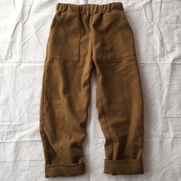 toco.さんのルーズパンツを作りました。120size。生地は、c&sさんのフレンチフランネル。お色は、キャラメル。タグはパタレさん。ゴムは、ナカムラさん。縫いやすくて、触りが良くて、大好きな生地です。↓ぽちってくださると、はげみになります。にほんブログ村