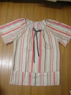 1/15日のラグランブラウスは間違いでした。すみません。シンプルチュニックが正しいです。ついでに麻でも作ってあって春になったら着ようかな、と思っています。この布はズーと前にえぬず(Ns)がまだ”ぬのや”だった頃の布です。麻100%でランダムなストライプが珍しくて買いました。