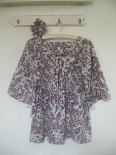 またまたペイズリーでリボンヨークブラウスを作りました。今度は綿なので縫いやすかったです。型紙はクルールさんで布は はる さんで予約して買った布です。以前の茶色のチュニックと同じ柄の色違いです。ペイズリーと花柄のミックスに紫~大好きな要素いっぱいです。ついでにシュシュも作りました。
