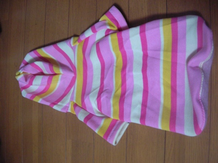 寒そうなチェリーちゃんのためにパーカーを作ってあげました。今度は女の子らしく、ピンクいろで。
