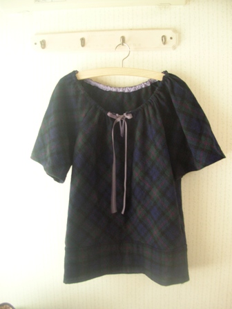 ちょっと前に作った服です。リボンを探していたら時間がかかって忘れてました。クルールさんの型紙でラグランブラウスです。←すみません、シンプルチュニックでした。3.4年前に買ったウールガーゼで作りました。軽くて着やすいです。