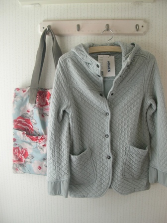 アーメンのキルトジャケットを買ってしまいました。ダウンやブーツが欲しいのになぜか1着安くなっていたのを見つけてしまいました。春に着れるからでもこれで何も買えません。ふふっ。いつもバーゲンの時期に季節はずれの物を買っているような気が、、、一緒に写っているキャスのトートはオークションで買った物です。以前作ったオイルクロスよりくすんでいる色にやられてしまいました。オイルクロスもこの色だと思ったんだよね。 おまけ。