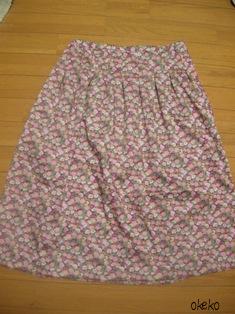 また、服を作っていました。やっぱり小物は苦手で勢いがないと。リバティのジェルダーローという柄でスカートを。型紙はPOLKA DROPSさんの無料パターン。ウエストはゴムなんですがタックがあるので腰回りすっきり。 裁断は超簡単です。タックがちょっと面倒かな。話は変わりますが、暇なときによく100均一で買ったボビンにほとんどの色の糸を巻いておきます。作ろうかなと思ったときに便利です。余った生地をバイヤスメーカーでバイヤステープをいくつか作っておきます。これも重宝します。オークションで一箱分工場用の糸を買ってあります。変な色も入ってますが。それを自分で作った糸立てで家庭用ミシンで使っています。白、黒、茶、紫はよく使うので 縫製工場の倉庫http://www.h3.dion.ne.jp/~k-miwa/index.htm で 4個づつエコノミー糸を買って家庭用ミシンとロックミシンと共用で使っています。ほかの色をロックするときはボビンに4個巻いてしのぐ時もあります。ちなみにミシンは家庭用ミシン、3本ロック、4本ロック、カバーロックを使っています。4本ロックを買ってから3本ロックはほとんど使っていません。カバーロックはスイート10の代わりに買ってもらいました。あとは職業用のミシンを使ってみたいな~。