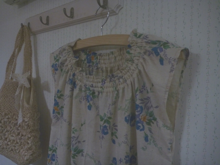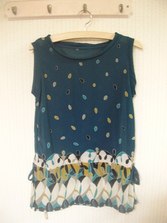 だいぶ前にパンドラハウスで買った500円布でノースリーブチュニック作りました。型紙は母の既製品から手持ちの型紙をまぜて作りました。沈没です。襟と脇は伸びてだらだらしているし、太すぎました。たらたらの生地で縫いにくいので縫い目は最悪。着てみると静電気ばりばり。母に頼まれたのですが渡しても着てもらえないでしょう、、、でもせっかく作ったので、のせることにしました。