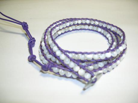 チャンルーのブレスレットもどきを作りました。黒の皮ひもにシェルとピンクオパールの5連ブレスレットです。シェルだけにするとちょっとハードなのでピンクをちょっと。子供にはかわいいといわれましたが、こどもぽいってことかな~。