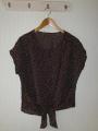 クルールさんの5月の新作型紙のリボンカシュクールブラウス作りました。布は布伝説で買った茶色ドットポリエステルです。クルールさんの推奨生地はオレンジとレモン色だったので、布伝説さんにもうちょっとシックな布を探しに行きました。ちょっと張りがあるのでドレープはあまりでないかな~と思いましたがポリエステルでも縫いやすそうだったので買いました。結果いい布でした。まだボタンホールはつけていません。。。失敗するとテンションが下がるので、とりあえずリボンにします。型紙を見た瞬間に私向きと思いました。おなかが目立たない~。40すぎると丈の短いブラウスはあきらめていましたが、これなら着られます。太い二の腕の一番太いところは隠れるし。とても気に入りました。