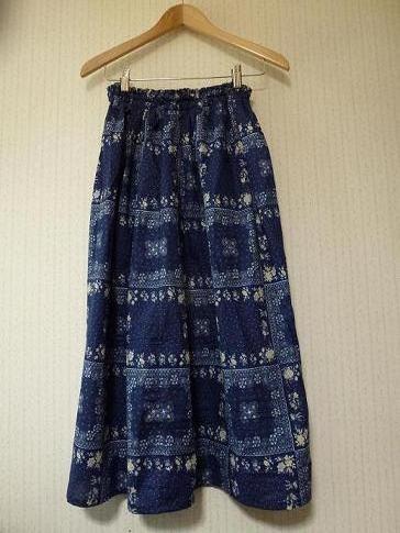 レースマキシスカートがうまくいったのでお気に入りのバンダナ柄の布でウエストゴムのスカートを作りました。かなり手抜きの作り方なのですぐにできました。適当に柄で切って、ウエストにゴムを3本たたきつけです。裏地もなしです。あくまでファスナー付けから逃げてます。ウエストがいやがるしね。