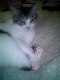 原稿書いて、その他諸々仕事をしていたら、イスに座っている時間がかなり長くなりました。あー、肩こったぁ~マッサージチェアに乗る元気もないくらいなので、もう寝ます。ニャンズのネイルクロウ、ピンクのなのですが、あみちゃんもレオちゃんも抵抗しましたが、つけてしばらくしたら、ほどほどに慣れていました。っが、既にレオちゃんもあみちゃんも、それぞれ1本ずつ取れていました。レオの場合は、外からは、ほとんど見えません。あみちゃんは、地が白いので、ピンクが映えてかわいいです。(でも一本ない)写真は、明日アップしようと思います。今日は寝るわ~