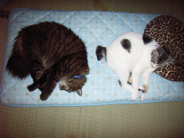 微熱がでました。 久しぶりの熱。 でも、元気と食欲はあるので大丈夫だと思います。 明日までたっぷり寝て治します。 ニャンズもおとなしく、私のいる場所にいつも一緒にいてくれます。