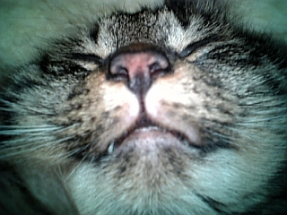 昨日は、同窓会で500人以上の人が会場に集まりました。600人に近かったのかなぁ~同窓会までは、ほぼ仕事。私たちは、幹事期だったので、2次会からが、ゆっくりできる時間。120人位は集まったのかなぁ~全然知らない人もいたけど、懐かしい人もいて、本当に楽しい時間を過ごしました。高校1年生の時の担任の先生が来て下さって、再会できたのも嬉しかったです。先生は、私たちが卒業前に、他の高校に転勤されたので、それ以来お会いしていませんでしたが、一目見て、すぐにわかりました。お話を聞くと、私たちが教えてもらっていた頃、先生は、まだ30代後半だったのです。うわ、私たちったら、それよりかなり年取ってるんだ・・・今。実感ないわ~結局4次会まで参加し、朝帰り。帰宅したら4時10分前でした。あみちゃん、レオぽんは、ちゃんとお出迎えしてくれて、すりすりしてくれました。お留守番してくれたご褒美に、ちょっとだけ缶詰をあげて、にゃんこトイレを掃除して、寝ました。すっかり朝だった・・・同窓会には、盲導犬協会の人がPR犬を連れれて来てくれて、3歳のサスケくんがしっぽフリフリしながら、可愛くお仕事してくれました。北海道の盲導犬は、まだまだ少ないようです。雪道訓練などもあるそうで、本州(内地)とは、違ってるんですね。ワンコの犬種も、ラブラドールのみだそうです。ゴールデンレトリバーだと、毛が長いから、冬は雪がついちゃうと、雪がダマになってついちゃうものね。なるほど、と思うことも、お話を聞かないと知らないことばかり。私も、少しばかりだけど寄付させていただき、盲導犬も訓練士さんたちも、もっと増えるといいなぁ~と思いました。さて、今日は、札幌も気温が34℃まで上がったようです。我が家の室温も、今年最高28℃を記録しました。エアコンも扇風機もないので、シーリングファンを回して過ごしました。あまり苦痛ではなかったけど、だらだらした日中でした夜は、ニャンズサービスとして、またたび遊び、庭での猫草バイキングを、楽しんでもらいました。(しかも真夜中)夜の庭散歩は、初めてなので、ニャンズも喜んでたようです。私は、流星を観察(口あけて空を見上げただけ)しました。短時間だったけど、6つ見えましたよもちろん、お願いごとをしました。それが叶ったら、みんなが幸せになることです。明日からは、少し仕事モードにします。仕事半分、自分のための時間半分くらいにしたいなぁ~明日も暑いようですから、あまり動きまわらず、家で静かに過ごそうと思います。ニャンズも、夜庭散歩させようかな。全国的に暑いようですから、水分補給しましょうね(人間も、わんにゃんも)今日は、あみちゃんとレオぽんのお水も、ぬるま湯くらいまで、あつくなってました。マメに取り換えて、氷入れてあげなくちゃ。今日の写真は、ドアップシリーズ。まずは、レオぽん。牙が出てますにゃお次は、旭山動物園のイワンくん。って、これはニャンコーチが撮影タイミングはずしただけでは・・・