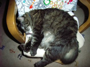 ニャンズは、久しぶりに私が帰ってきたので、生活のペースが狂っているかも・・・私は癒されて幸せです。撫でるだけで、落ち着きますねぇ~すっかり疲れたのか、早くに寝てしまい、私は取り残されてしまいました。明日の朝は、ゆっくり寝ていたいけれど、きっと起こされることでしょう。ということで、あまり夜更かしせずに寝ることにしまーす。レオは、私のイスの上を占領あみちゃんは、キティベッドでzzz…