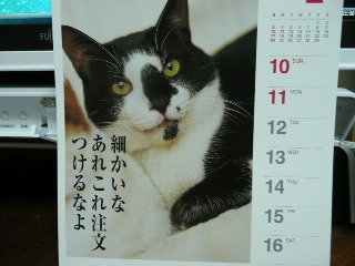 今日は、仕事せず。あ、今日も、か・・・早めのランチを、ryumiyuさんと一緒にしました。2時間くらいしゃべってから、今日のメインイベントである、内藤いづみ先生の『命の雫たち』という講演を聴きに行って来ました。甲府で、在宅ホスピス医をしていらっしゃる先生ですが、本当に素敵 芯は強く、行動はしなやか、そして自然体という感じの方で、お話も気負いがなく、それでいてインパクトがあるのです。笑いと涙の素敵な講演会でした。ドクターやナースもいたようですし、たぶん、がん患者さんやそのご家族などもいらっしゃったのかなぁ~お家で看取るとうことの大切さを、改めて感じました。先生からの宿題は、『あなたが今、一番したいことは何ですか?』ということ。病気で、あと3か月位しか生きられない、という人だけでなく、私たちにも、確実に死は近づいて来ています。それがいつ来るかさえわかりません。だからこそ、今自分がやりたいことをやれるような人生を生きたいですね。皆さんも考えてみてくださいね。がんで亡くなるおばあちゃんを、家族が体をさすったり、話しかけたりして看取る場面のDVDも少し見せて頂きました。曾孫さん達も、「おばあちゃん、ありがとう」って言ってるんです。死ぬ時に、家族から「ありがとう」って言われて旅立つことは、幸せなことですね。いづみ先生がおっしゃっていた、幸せな思いはきっと天国に持って行ける、ということ、私もそうだと思います。私も家族や周囲の人たちに、幸せな思いを少しはプレゼントできるようでありたいなぁ~と思いました。そして、自分自身も幸せでいることが大切ですね。ryumiyuさんをお誘いして、良かったわ~もっとたくさんの人をお誘いすれば良かった・・・と悔いが残ります。帰り、ryumiyuさんと紀伊国屋で、猫カレンダーお揃いで買っちゃった 私は、その後、ICレコーダーとデジカメも買ってしまいました。本当は、今日は下見・・・の予定だったのになぁ~カメラ売り場のお姉さんが、とっても親切に説明してくれて、私のわがままもきいてくれて、しかも笑顔がとってもかわいかったんですよね~どうせ買うんだし、今日でもいいか!と買っちゃいました。デジカメは、本当は、小さくて軽いものを・・・と思っていたんだけど、10倍ズームに負けて、 最新のではなく、今年春に出たものを買っちゃった。早速試してみているところです。成果は明日あたりに発表?できるかな?良い一日で、たっぷり遊んだので、明日は、バリバリ仕事デーです。朝8時~夜まで、コーチングセッションと研修準備、そして原稿書きと盛りだくさんのスケジュールでございます。あみちゃん、レオぽんは、すでにリビングでお休み中。私が寝る頃に起きてこる可能性大。昨夜に引き続き・・・となりませんように!!