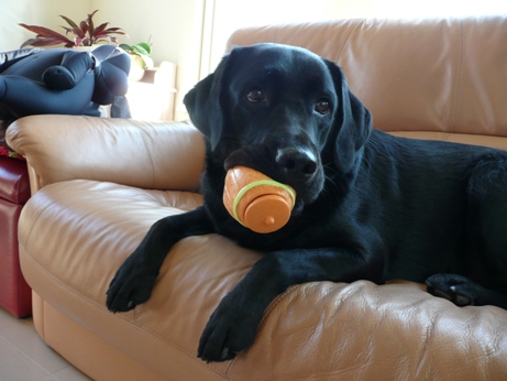 先日遊んでくれたイアンくんの写真で~す。黒ラブ好きの皆様、楽しんでくださいね♪おもちゃを投げてあげると、キャッチしますでも、なかなかニャンコーチにおもちゃを貸してくれないのだぁ~鼻デカ写真っぽいでしょ?愛嬌あるよね