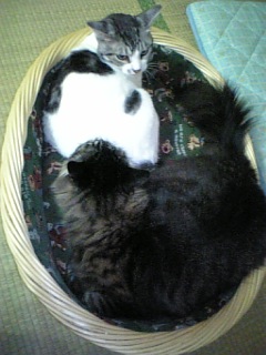 帰ってきました! 札幌だぁ~寒いけど、今日はまだ穏やかな感じらしい。羽田空港で、時間がたっぷりあったので、お店をふらふらして、手毬寿司を買って、ラウンジでのんびり食べました。眠気と戦うのが大変でした。うっかり寝たら、飛行機に乗り損ねそうだったのです。何とか寝ないでがんばりました!飛行機は、満席状態で、窮屈でした。前勤めていた会社の人と、飛行機で会ってびっくり!そのうち、ランチでもおごってもらわなきゃ・・・なんて。札幌の地下鉄がなぜか混んでいた。ファイターズの試合があったんだわ~、そして勝ったのでした。荷物持っていると、混んでる地下鉄は大変。札幌の地下鉄って、網棚がないんですよ。東京の地下鉄ならあるのにね。赤ちゃんが、ずっと泣いていてかわいそうだなぁ~と思ったら、赤ちゃん連れで野球観戦していた様子。う~ん、野球好きなんだろうけど、赤ちゃんの生活を考えたら、ちょっとかわいそうだなぁ~私が地下鉄に乗ったのは、夜10時過ぎ。赤ちゃんの時から、睡眠が乱れて成長を妨げるということも研究されているけれど、現代社会は、赤ちゃんでさえ、ゆっくり寝ることができないんだろうか?余計なお世話かもしれないけれど、やはり赤ちゃんの生活を大切にしてあげて欲しいなぁ~と思いました。自分達が楽しむことも、時には必要だろうけれど・・・アメリカだったら、ベビーシッターを雇って、自宅で寝かせて、自分達が遊びに行くのかな?どうなんだろう?まぁ、私もにゃんこを置いて、長期出張に行ったりしているから、「そんなかわいそうなことをして」と言われても仕方ないよね~ニャンズ、帰って来た時は、大歓迎してくれてうれしかったわ。お風呂に入ったりしているうちに、ニャンズは、もう眠くて眠くて・・・という目をしています。私は、手毬寿司を6時過ぎに食べたけど、おなか空いてしまった。さっき、バナナを食べたけど、おさまらない・・・さて、何食べて寝ようか・・・消化良いものにしたいな。食べないで眠るというオプションは、今のところ考えられず。だって、眠れなくなりそうなんだもん。あー、こうして不規則な睡眠、食事の生活が続くのでしょうか・・・いえ、明日からは、切り替えますにゃ!