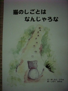 昨日の続きで~す。 これが表紙です。 だそうです。 中の一部です。もう1冊は・・・ 最初に飼われていた家族から虐待されたのか、人間不信になったワンコと里親さんちのニャンズのお話です。 モノクロで味がある絵です。 今日のあみレオ。以前使われなかったベッドを出してきたら・・・しばらく一緒にいましたよ。
