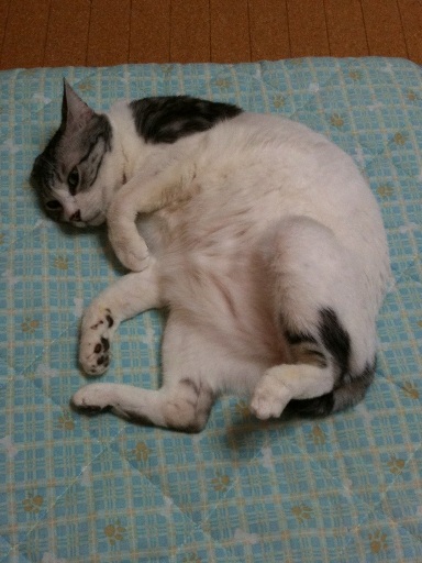とりあえず、少しずつでも続いているwii fit での運動。 苦手な腹筋運動を少し入れてみたら、やっぱり痛い。普段使っていない筋肉がしっかり意識できますね~ふくらはぎの筋肉痛はなくなりました。相変わらず、バランスゲームは、全然駄目ですわ~なぜか、ニャンズも一緒に参加してくれるので、余計ダメになっちゃいます・・・あ、ニャンズのせいにしちゃいけませんね。 今日の札幌は、、日中よい天気で庭の雪、だいぶとけたなぁ~ と思っていたら、夜、また雪が降り、雪が積もっています。鳥たちがご飯を食べに来るので、また明日の朝、パン屑を雪の上にまかなくては。 少し、雪を取った方がいいかなぁ~ 全然、ブログ内容と関係ありませんが、i phoneで撮ったあみちゃんの写真です。おなかぽんにょりぃ~です。本当は、もっと激写(?)があるのですが、それを出すとあみちゃんに怒られそうで・・・嫌がらせが悪化するとまずいので、掲載不可です。動画も、割合きれいに撮れるので、気軽にi phoneで撮影しています。結構使うと楽しいものです。