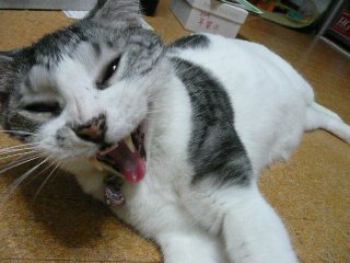 すごい・・・ カメラのストラップにじゃれて遊んでいる時、あくびの途中の写真です。ちょっとかわいそうかなぁ~ シャンプーして、乾いたら、おなかももっふもふぅ~空気が乾燥しているので、静電気がおきちゃって困ります