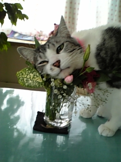 あみちゃんが反応するものの一つです。お花が潰れちゃうよ~