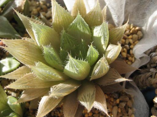 しばらくお休みしてたブログですが、また再開します早く画像撮り貯めしなくちゃ、また休止状態になっちゃうわ・・・家のベランダ、冬は日当たり悪く・・・ベランダてすりにオニクを頑張って置いても日に当たれる時間といえば2~3時間がいいところオニク達のために日当たりのいい土地に引越ししたくなる衝動に駆られる私です数年前から陽の目も当たらず密かに少しずつデカくなりつつある先住ハオなどご紹介プリングレイクーペリー青雲の舞それに雲翠の4種・・・・・・?何が違う???ま・・・まさかこの間のように全部同じハオなんて??ないよねハオってばよく分からないわぁ記録用雑記8日最低気温-0.1度最高気温12度晴れ9日最低気温5.1度●実生苗、サボテン完全室内管理●ペペロミア属・モナンテス属・プレクトランサス属、夜だけ室内避難。日中はベランダ管理●他の属はベランダ管理。日中はベランダの手すり、 夜だけセネシオ・コチレドン・カランコエ・ハオルチアを簡易(まだ作成途中)防寒ラック エケベリア・セダム・クラッスラなどは霜よけにラック収納 センペル・ロスラリア・ジョビバルバ・オロスタキス・ヒロテレフィウムは放置