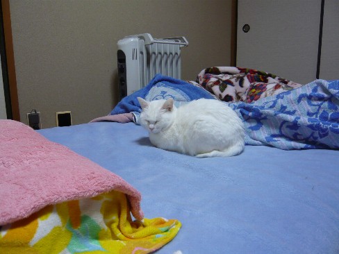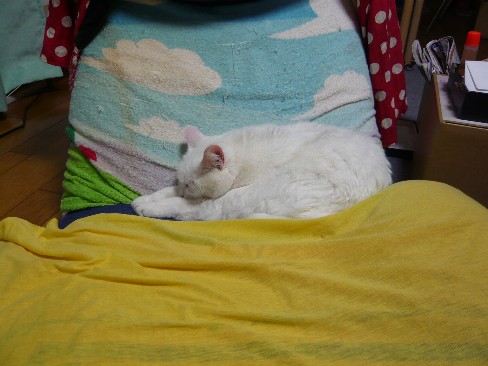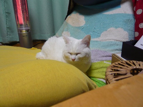 寒の内一年中で最も寒い時期なのである。ところが去年は最高気温が18度くらいあったようだ。ここ二年ほどは暖冬傾向が続いていたが、一転して今年は寒い冬。ダレたカラダには厳しい限り。とはいえ、断熱バッチリのマンションでは、夜の寒さもそれほど堪えない。だから雪ちゃんも下僕が掛けている布団の上で寝ているのであろう。珍しく膝に乗ってきたので、デジカメの電源を入れたら・・・テーブルへ移動何枚か撮っていたら、飛び降りたTT来週は再び寒気が来るらしい。猛暑だったし台風が少なかったので寒い冬になるとは思っていたが、これほどとは思わなんだ。インフルエンザも流行っているようだし、みにゃさん気をつけましょうね。【本日のビール】生ビ