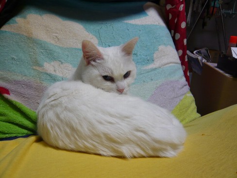 踏みつけられる朝8時ごろに目が覚めてカリカリを出した後、二度寝。食べ終えた雪ちゃんは、和室へ戻ってきて下僕の上にどっこらしょ。重くないけど・・・重くはないけど寝られない、動けない。隣で寝ていたオカンがそれを見て笑いながら「ほら、雪ちゃん。コッチにおいで」と助け舟。だが、雪ちゃんは動かなかった。(まだ一度もオカンに添い寝はしていない)ビロビロになったカーペットを裏返してみた白い雪ちゃんと灰色のカーペット。写真は撮りやすくなったかもwコンパクト午後、買い物から帰ってきたら、TVの前に並べたフィギュアの一つが落ちていた。雪ちゃんには珍しい抗議の自己主張かもしれない。【本日のビール】キリン一番搾り