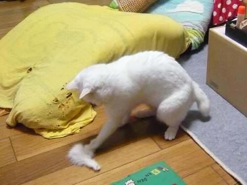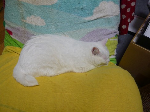 今日もよく寝てたらしい06:50 下僕・・起床、雪ちゃん・・起きて室内をウロウロ07:25 下僕・・出勤、雪ちゃん・・廊下の途中までお見送り(玄関から見えず)---以後、オカンからの伝聞---07:30 室内をウロウロ、布団の周りを二周、台所側から和室を覗き込む08:00 布団に潜って就寝・・・16:00 起床、カリカリを召し上がった直後にゲッパ16:10 水をガブガブ飲み、再び寝る---伝聞ココマデ---18:50 下僕・・帰宅、雪ちゃん・・寝ている19:30 起床、晩ご飯を食べている下僕の後ろに座り込む19:40 少量のカリカリを召し上がる20:00 椅子の上でウトウト20:30 少量のカリカリを召し上がる22:40 大運動会23:00 布団の上でウトウト寝る子は育つカメラを構えるとケツを向けるのよねぇおかぁさんのおかぁさんに、ゲッパのお掃除ありがとうって云ったかなどうやら云ってなさそうですね帰宅した下僕のそばにくっついていたのは、お留守番が寂しかったから・・・だと思いたい。【本日のビール】キリン一番搾り