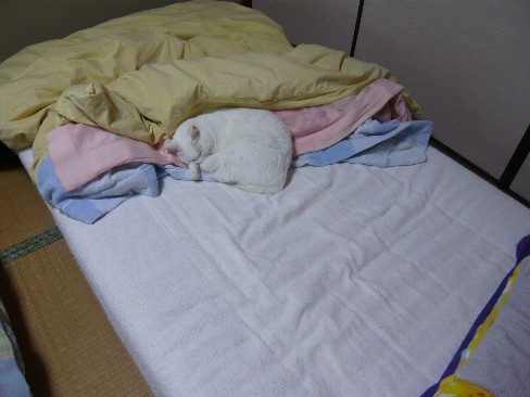 寒くなったので昼間の雪ちゃんが布団に潜る季節になった。もちろん夜は添い寝である^^ちょっと前は掛け布団の下に入っていたのが、今日は更に毛布の下だった。やはり寒いと感じているのかしら。そろそろオイルヒータを出した方がいい?それにしても、朝ご飯を少し食べただけで夕方まで、いや夜まで寝続るのはさすがと云うべきか。さっき無理にメヤーニを取ってやったら「ぃにゃん」と逃げていった。そしてオカンに何やら云いたそうな顔で近づき、オモチャで遊んでもらっている。どうやらイヤなコトをされたので、にゃおんの傍へ来たくないらしい。オカンと顔を見合わせ、まるで「ねぇ」「うん」とでも云うようなご様子。ちょっとヤキモチ焼いちゃいますよ^^ゞ【本日のビール】サッポロ冬物語、キリン一番搾り