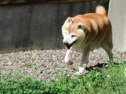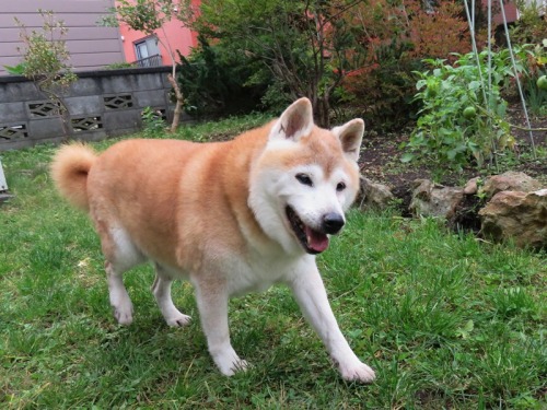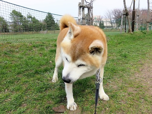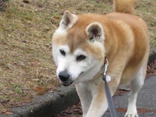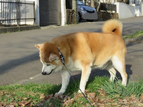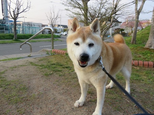 すっかり雪の融けたけんた地方。昨日今日と雪がちらつく寒さになったけどけんたは元気に散歩。アレルギーが出てきて、右目がすごいことになっているんだ^^;「でも、よく食べるからな何人前食べるつもりかな」え?男前?「誰が男前だと?」お父さん。。。、かな。。。「ふふふ、お世辞がうまくなったな」ご飯山盛りで頂戴ね(^^♪「ごますりだったか。。。」