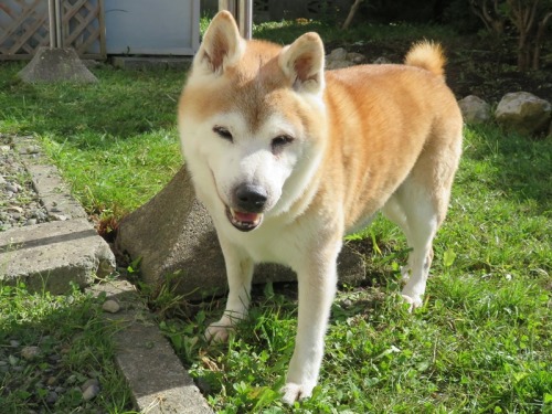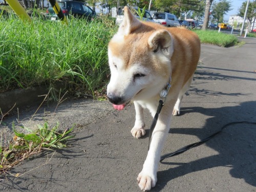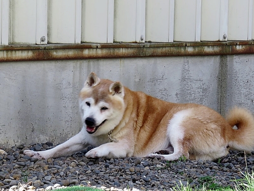 雨が降り、一気に涼しくなったけんた地方。気配はすでに秋、かな。散歩も快適になったんだよ。でも、最近は上手に歩けなくなって、よくしりもちをついちゃうんだ。食欲はいつもどおりで、特に何でもないんだ。年を取るということはこういうことだよね。じゃあ、またね。
