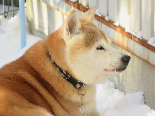 真冬のように大雪と吹雪が続いたけんた地方。数日前から落ち着いてきました。久しぶりにベランダのドアを開けようとしたけどん?んんん?。。。開かない。。。よく見たら、雪で埋まっていましたー^^;急いで雪除けしたけどその時、けんたは寝ていた。。。けんた君は、倒れたら起きれなかったが少しずつ、10回のうち1回くらいは起きれるようになってきた。転ぶまでの時間が踏ん張れるようになってきているよ。薬を増やしたのが良かったのか?たっぷり寝ているのが良かったのか?相変わらず、夜中にも起こされているが、なんとなく、微妙にちょっぴりだけど回復しているような気がする今日この頃です。