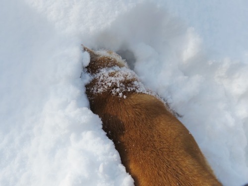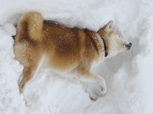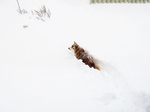 たっぷりと雪が積もった(^^♪茶色い雪か?┌( ̄∇ ̄+)ナイナイ一度埋まったら、抜け出せなくなってきたけんたくんでしたσ(^_^;)ネリネリというよりダイビング、かな。。。それでも、久しぶりの雪に楽しそうに遊ぶけんた君でした。だんだんと、首が曲がっているようにも見えるけど気のせい。。。ですかな。。。久しぶりの大雪を堪能しご機嫌のけんた君であったがやっぱり斜頸がひどくなった今日この頃でした。