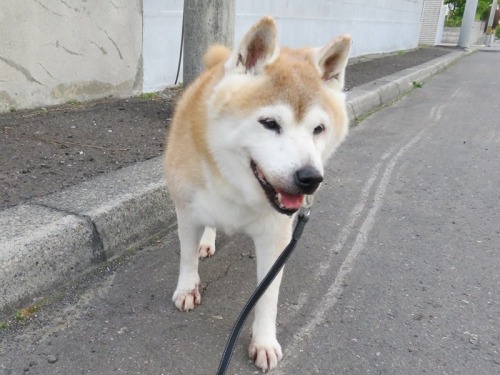 最近のけんた君。勢いよく外に飛び出して家の前でごあいさつ。「けんた、行くぞ!!」え?なに?「今日はどこに行く?」お父さんだけ行っていいよ\( ̄ー ̄;)「また、首が曲がってきたな」うん、少しだけね。「病気がぶり返したかな?」いや、そうでもないかな。「じゃあ、どうしたんだ?全然前に進んでないし。。。」なんかさ、斜めに見なきゃ見えない真実が多かったりするんだよね。「いいから、散歩に行くよ ( ̄ヘ ̄)」はーい。。。。