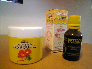 母にもらったプロポリス、愛用の『ツバキハンドクリーム(医薬品系含めどんなハンドクリームよりも私には合っていました)』に混ぜて塗っていたら、なんだかとても良くなってきたんです。
