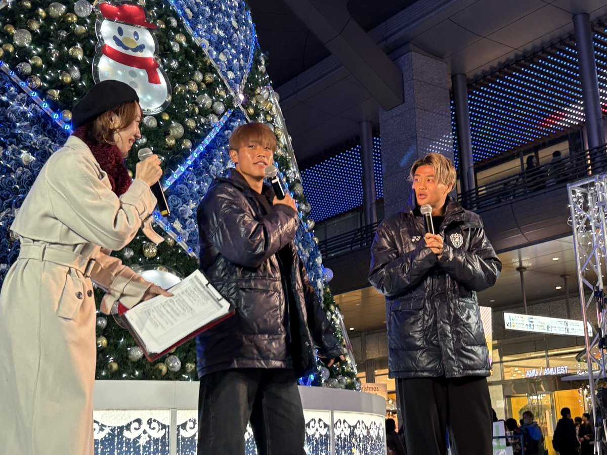 朝から買い物。博多駅のマイングで ヒルマニ「アビトーク」を聴いた。たっしー、サウナが好きなんだ!このまま夜まで博多駅に居たいたかった。大量の食材を購入して帰宅。はぁ~😮💨さっきまで博多駅にいたのに、なぜ私は今、家にいるのだろう…博多駅前広場🎄✨️ は、これから楽しいことがあるというのに…🥲✨️🎄 クリスマスアドベントトークショー 🎄✨️ 名古新太郎 選手と 岩崎悠人 選手が登場🎤📸 公式 X より 3枚Twitter に写真がいっぱい上がってた。楽しかった、って。名古ちゃんの関西弁の突っ込み、最高だもんね😆もっと早く告知してくれてたら、何とか段取りつけたのに。前日の18時じゃね、どうにもならん。🐝公式X よりファンクラブの入会者プレゼント🎁 のフード付きタオル試作品らしい。バスタオル サイズ?思ったより大きいな。これならベススタで観戦中の急な雨に対応できるね。雁ノ巣でも活躍しそう👍️他にも入会特典あるし、ネイビーなら会費は実質 0 じゃない?