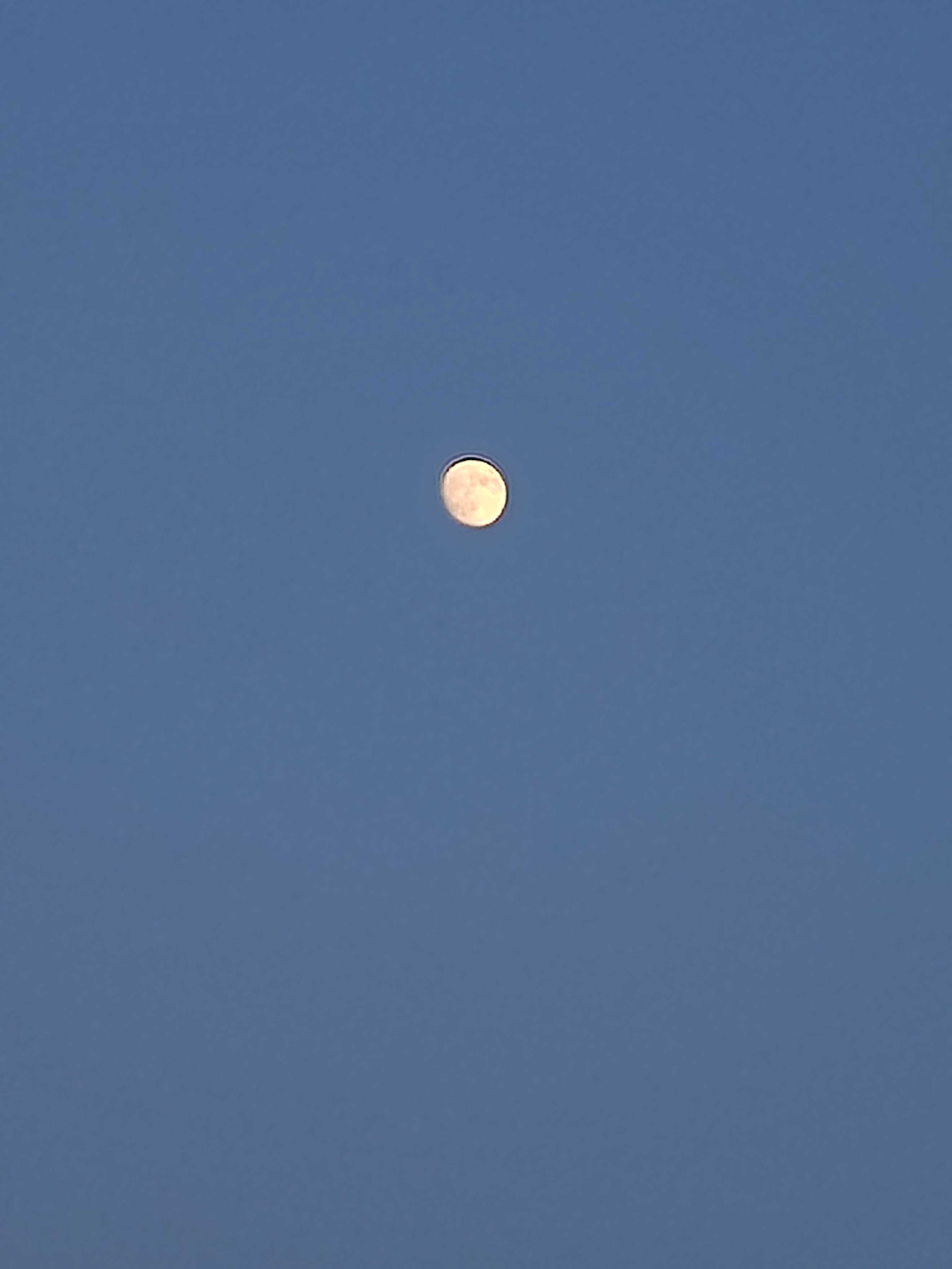 寒くなったーーー、着るものが無〜〜〜い😰時間作って買いに行かなきゃ! 焦る💦💦今日は、溜まった録画を観る日だったから行けなかった。明日は雁ノ巣と義実家だから… 水曜か木曜だな。 今日の福岡の月の出は 15:44 だから、我が家から見えるのは17時ぐらい。忘れないようにしなきゃ!17時28分の月🌔空の色が、いい感じに撮れた👍️✨️🐝の色、ネイビー💙 🤭明後日は、今年一番のスーパームーンらしい🌕️ ✨️楽しみ💓