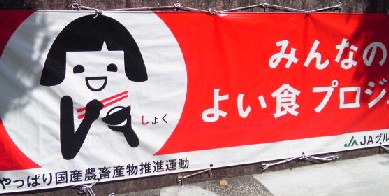 なぜかというと、よい食プロジェクトのシンボルのようだが、少女の脇に「しょく」と書かれているから、並べてみれば、人の部分は「良い」という文字を図案化したのだろう。そして、黒い腕の部分が平仮名の「い」に見えるから、顔の部分が「よ」或いは「良」を表しているのだろうが、どう見ても苦しいと感じたからだ。