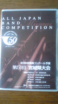 1週間経過してしまいましたが報告します。11/23;【みやぎスーパーバンド演奏会】吹奏楽部の指導している先生方のバンドです日頃の指導者の顔から演奏者の顔に変わっていましたいきいきと楽しそうに時には真剣に♪♪さすがにお上手です(笑)多忙な勤務の合間に練習を積んで演奏会を継続している先生方の向上心に敬服です[ラプソディ・イン・ブルー]☆客演ピアニスト:山田武彦さん☆カッコ良かったーシンフォニックJAZZ即興の青葉城恋唄Ver.♪想像力と創造力にブラボーー11/24;【仙台フィルハーモーニー管弦楽団特別演奏会】オーケストラ!VS.ブラス!22年ぶりのブラス奏者(公募)と仙フィルとの合同演奏我が娘所属の吹奏楽部⇒2年生3名・3年生1名・OB1名も参加です憧れの存在の演奏者と共演できるのは貴重な経験ですねそれぞれ、みんなステージの上で輝いていました◎☆サクソフォン:須川展也さん☆カッコ良かったーSaxもご本人もピカピカだわ~[星条旗よ永遠なれ]最後はステージと客席のみんなによる合同演奏小学生~社会人の方々もマイ楽器持参で♪会場いっぱいに音が溢れてるブラボー残念ながら…クラ2年目修行中の娘&素人の母は拍手での参加でした3番目の演奏は!!!!!コチラのDVDです!!!!!【吹奏楽コンクール予選:宮城県大会】課題曲『ブライアンの休日』自由曲『アルメニアン・ダンスパート1』2008年・夏吹奏楽部♪全員でがんばった演奏です中学生にしてはうまいやないか~い(笑)そして先輩ママさんが教えてくれたと~り演奏終了後に各パート一人ひとりの名前が出てキターーさすがゴールド金賞ーブラボーー1st.クラの我が娘、指揮者:木村先生の真ん前で演奏のため…かぶりまくりほんのわずかしか見えませ~ん残念ですっ