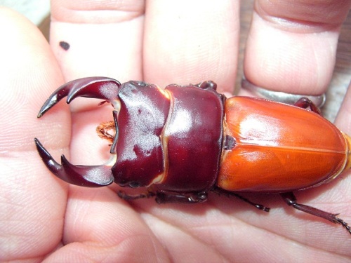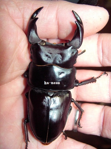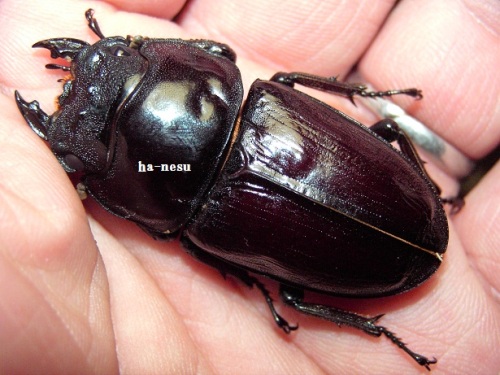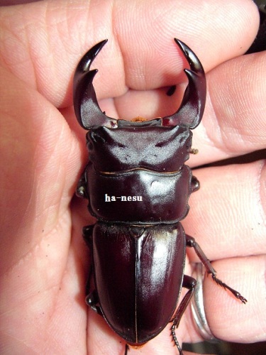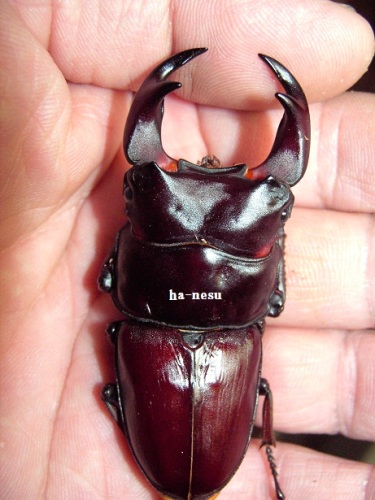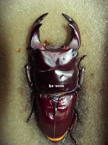 現在 オスは、12頭ほどの羽化と思いますが、例年よりは 格好いい個体が 多い様に思います。(決して 太いワケではありませんが・・・)TOPページ下の 2013年羽化個体に、画像を更新してますので、お時間の有る方は・・・(規格外は、細いですけどね。)中でも、60mm個体が 意外とお気に入りで、手に取るとかわいくて かわいくて・・・。顎幅4mm後半はあります。ペットとして眺めるには ちょうど良い感じです。(笑)タイトル個体は、hB2α16-16です。軽く計測で、72.0mm-25.6mm-26.9mmです。軽くなので、数値を下回る可能性がありますので・・・。我が家の064は、一般的064よりも 体が細い傾向にあるので、その分 顎が、太く写るかも知れませんね。顎も軽く 計測しましたが、6・・・有りそうです。ちゃんと計れば 切るかも・・・です。まあ、そんな感じの個体ですが、現在の看板候補となります。では、画像を・・・ にほんブログ村 ←TOPへ...