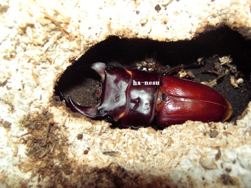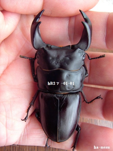 現在、4頭の良さそうな個体が 羽化しています。そして、このhB2γ-01-01が、羽化から9日目くらいになるのかな?だいぶ黒くなってきたので、計測してにました。4月29日割り出し5月27日まで、菌糸PC管理5月27日より1本目に・・・9月8日に 2本目に交換(20.0g)2本目のままで 1月18日羽化・・・67.5mm-24.3mm-25.8mmでした。顎幅は、5.5mmup!?容姿は若干地味ですかね。・・・オス親が、地味だったからな~。 にほんブログ村 ←TOPへ...