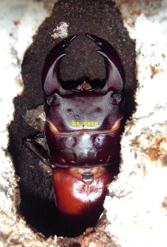 歪みのある蛹・・・hB2αのMAX体重(管理個体中でも・・・)幼虫は、蛹化時に 歪みがあり、無事の羽化が望めないかと upを控えておりましたが、もう1頭の歪み君が、先日 無事?に羽化しましたので、upしてみることに。(現在の様子を・・・)羽化したのは、この仔よりも 激しく、顎はやや上を向いていました。その為、自力での反転が不可能と思い リスクを承知で、スプーンで他力反転させて 羽化させました。歪みの後遺症はあると思いますが、現在見る限りでは、完品っぽいです。・・・画像は、hB2αのインです。サイズもあるので、「6」がねらえるかもと、期待していますが、不全が 天敵です。(笑) にほんブログ村 ←TOPへ...