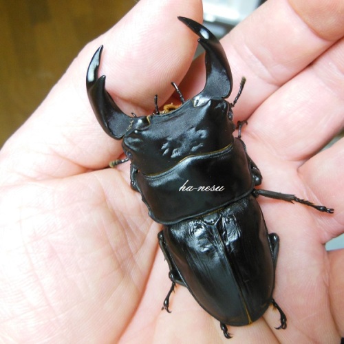 hB3α-63-02・・・羽化から 約2週間経過。73.5mm近辺。(IN Line)そして、羽化から1ヶ月半経過の hB3α-53-21・・・72.0mmくらい?(こちらも IN Line) 露天掘り時に右顎を凹めてしまった様で、0.1~0.2mm 損したみたい。(笑)意外と写真写りの良い個体です。(笑)この仔は、来期の種親として考えています。・・・今期は、hB3Cβ-15-06とhB3α-44-01で、確定しているので・・・。来期用にもう1頭羽化して欲しいところです。・・・ にほんブログ村にほんブログ村にほんブログ村 ←TOPへ...