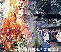 【今日の情報 : 歳時記・催し・話題・出来事】★京都市内の各地の社寺では一月十四日、正月飾りや書き初めを燃やす小正月の行事「左義長(とんど)祭」神事が行われる。 東山区・新熊野神社では、約六百年前の室町時代から左義長神事が行われたとされ、境内に高さ約五メートルの笹竹三本を立て、それにしめ縄を巻きつけて左義長を神火でたき上げ、勇壮に舞い上がる炎に、参拝者は無病息災などを祈った。 ★伏見区・日野の法界寺で一月十四日夜、寒中の伝統行事「修正会裸踊り」が行われた。厳しく冷え込んだ境内で、下帯姿になった男達が「ちょうらい(頂礼)、ちょうらい」と勇壮に叫んで体をぶつけ合う。五穀豊穣や平穏無事を祈って毎年元旦から営まれている修正会の結願日に行われ、江戸時代中期から続くとされる。薬師堂で厳かに法要が続くなか、下帯姿の子供達や成人男六十名ほどが国宝・阿弥陀堂を駆け抜けて登場。寒の入りの一番寒い底冷えの時期だけに、その寒さを吹き飛ばす勇壮な踊りは、頭の上で力強く両手を打ち鳴らし、井戸水を浴びた男たちが激しくもみ合って踊ると、体からは白い湯気が上がり、境内は熱気に包まれた。 乳薬師と親しまれる安産・授乳の神様で、裸踊りのふんどしは安産の腹帯として人気がある。裸踊り終了後まかれる「牛王札」も人気で、取り合いになります。