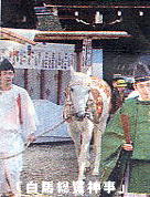 【今日の情報 : 歳時記・催し・話題・出来事】北区・上賀茂神社で一月十六日、「武射神事」が行われる。 大的式弓射引初め神事(おおまとしききゅうしゃひきぞめしんじ)とも言われ、平安時代に始まった神事。境内芝生の東側に射場が設けられ、直径約一.八メートルの的の裏に「鬼」と、大書された的が用意される。その的を一人二本ずつ射て悪鬼祓除し、その年の無病息災を祈願する。 烏帽子に狩衣姿の神職達が御幣殿前の芝にて、四十メートル離れた的を射るもので、迫力満点です。武射とは「歩射」から転じたもので、馬に乗らず矢を射るのでこの名がつけられて、これだけ広大な場所での弓の神事はあまりないので、ゆっくり見物できるのが魅力。