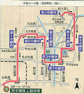 【今日の情報 : 歳時記・催し・話題・出来事】 一月十三日午後零時半、スタートを告げる「全国都道府県対抗女子駅伝」は西京極陸上競技場において二十六回目の号砲が鳴り、花火があがる。 世界に、オリンピックに、羽ばたこうとするホープ達には、京の都大路は日本の女子マラソン界をはぐくんできた母なるロードだろう。 今回から「ふるさと制度」が変わったのに伴って、アテネ五輪女子マラソンの金メタリスト、野口みずキ選手や北京五輪を目指す選手も数多く走り、熱戦が期待される。★新春気分もそのままに、九区間になどらえた“数え歌”のような短章でスタート。 一区・いつも輝くランナーの顔。見るものすべてに勇気をくれる。 二区・逃げるぞ追うぞ。駅伝の魅力は抜きつ抜かれつ。 三区・寒い冬にも熱い戦い。冬枯れの都大路が華やいでくる。 四区・呼んでいる。たすきを待つチームメートが見えたら、そらラストスパート。 五区・ゴールを目指す中盤の展開。ここらが勝負の胸突き八丁。 六区・ロードを埋める大声援。ふるさと選手との一体感 (レース直前の調整練習に励む選手達)が忘れられない。 七区・涙流した厳しい練習。苦しいときに思い出せばパワー全開。 八区・ハッとする、かわいい中学生の走りに無限の可能性が見えた。 九区・苦労を忘れるゴールの一瞬。 そこには四十七チームそれぞれに、順位を超えたドラマがあった。果たして今年の展開は・・・ 続き第二便は終了後に発信。